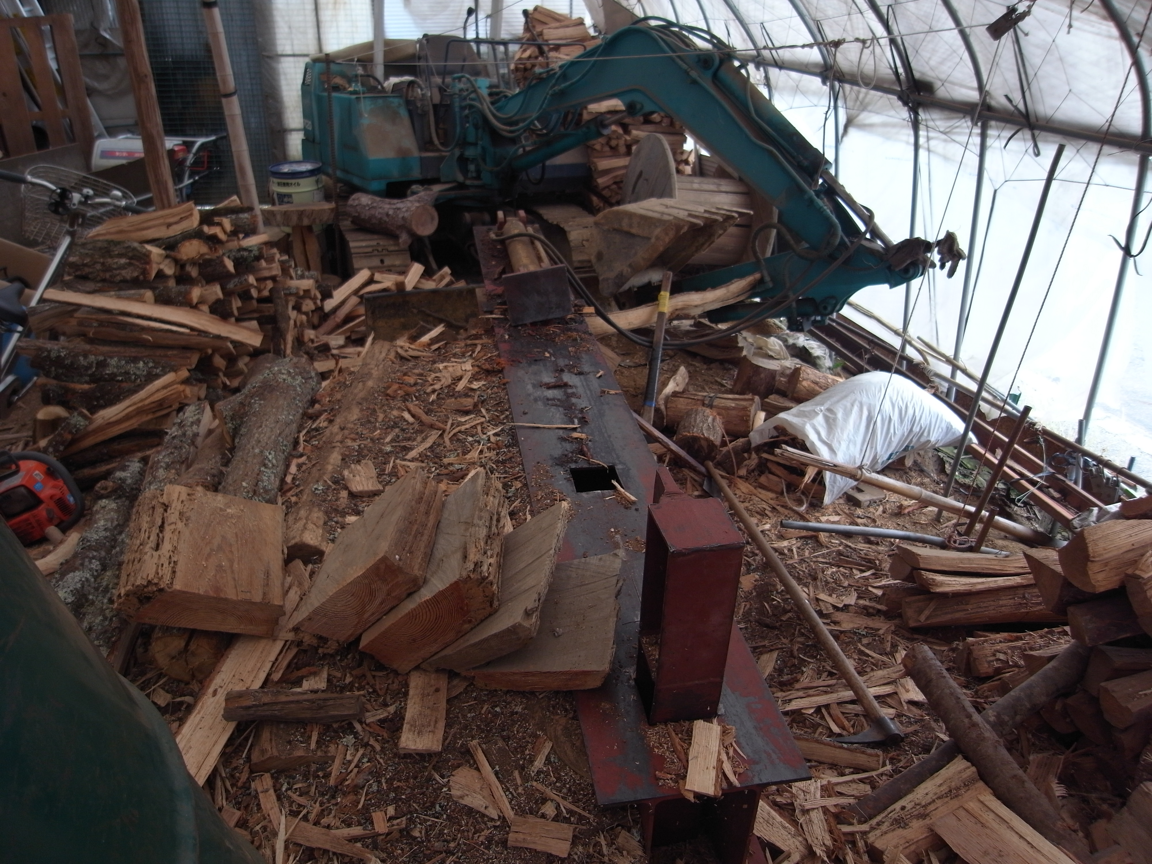 このごつい機械で木を割っていくようです。