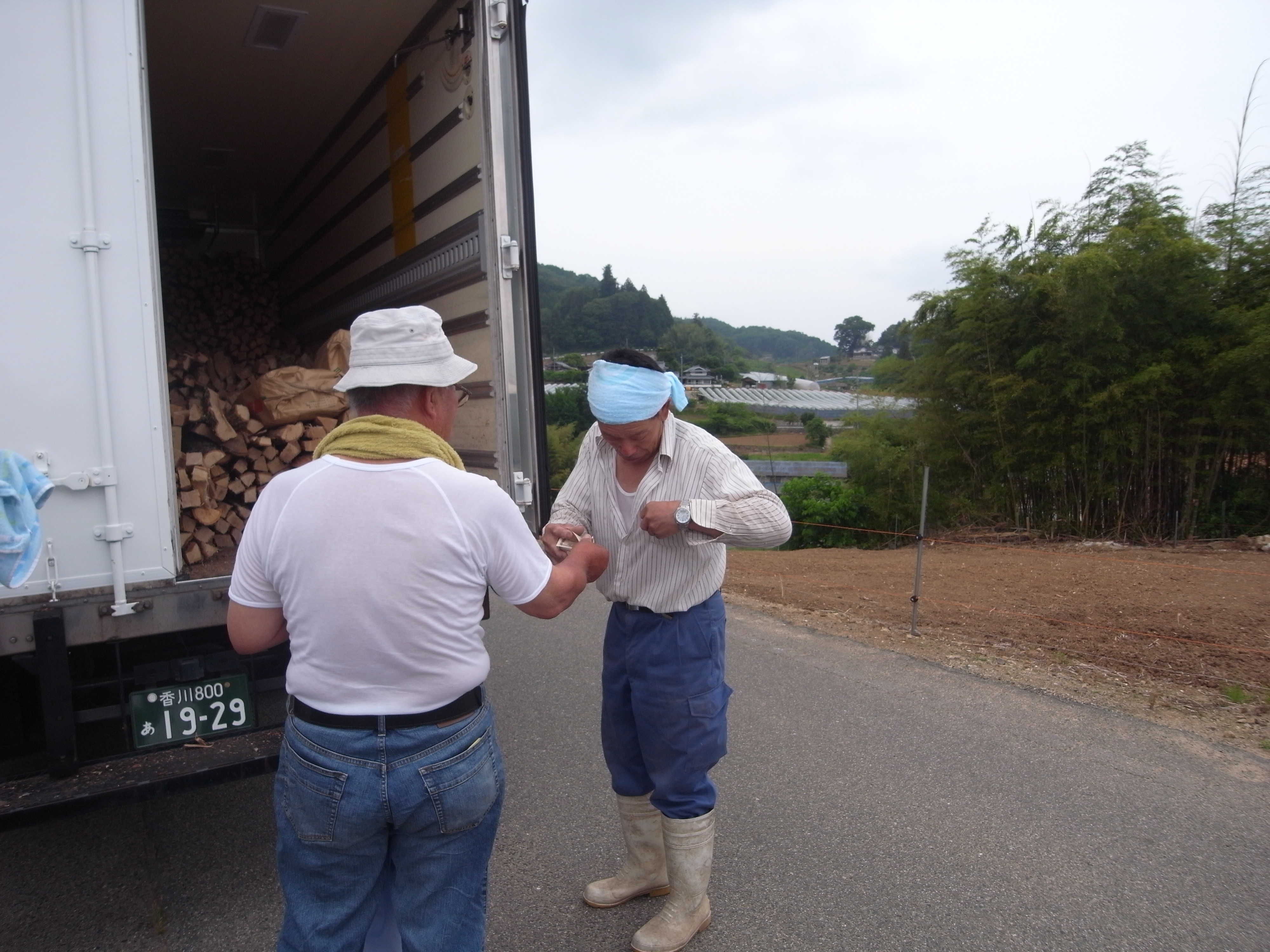 薪を車に積み込み・・・・