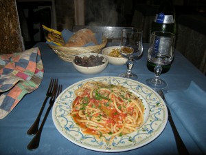 とんがり屋根のレストランでパスタを食べて・・・・・